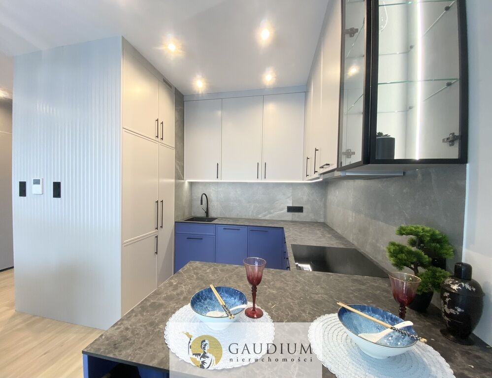 oświetlenie podkreśla jego nowoczesny charakter. Aneks kuchenny