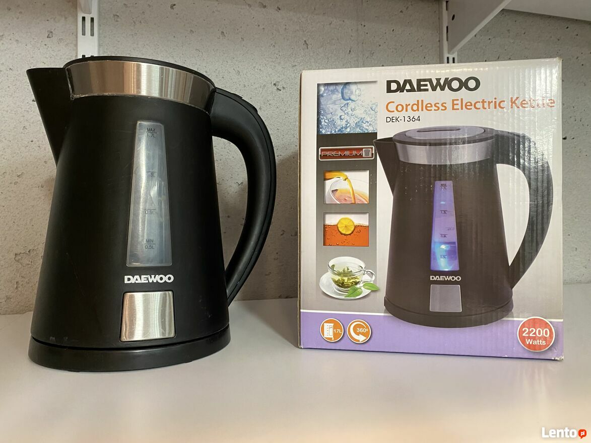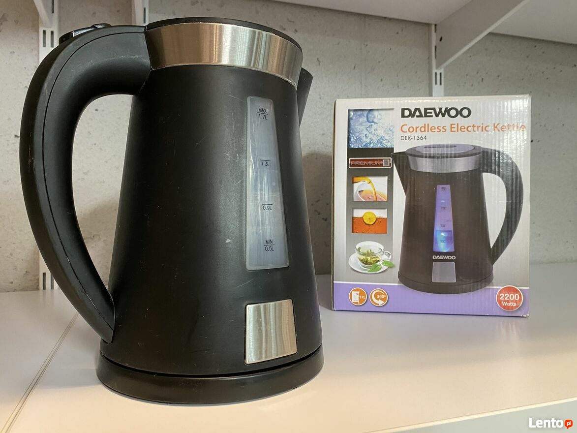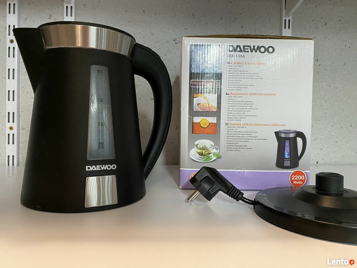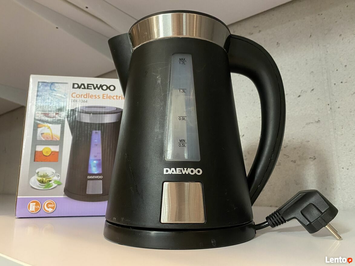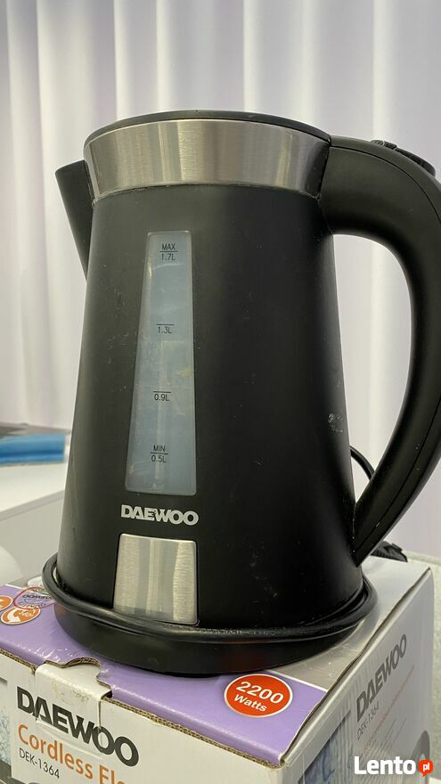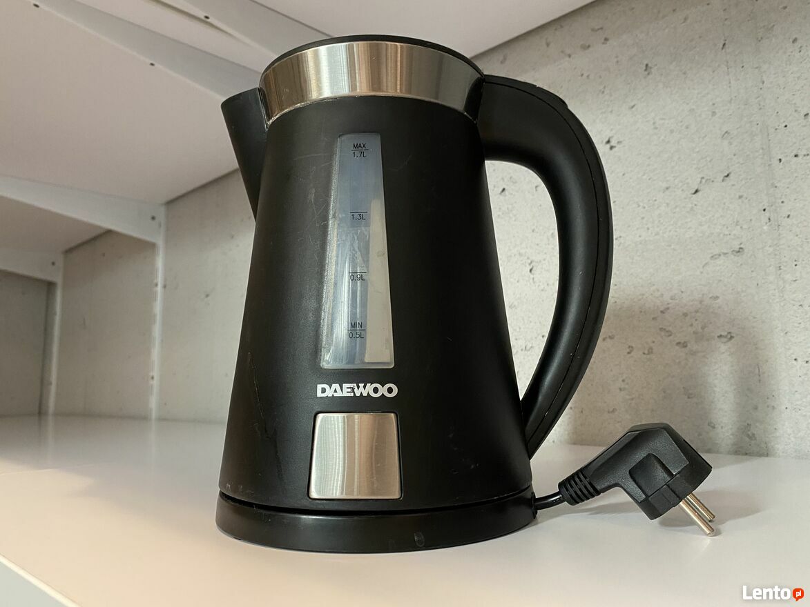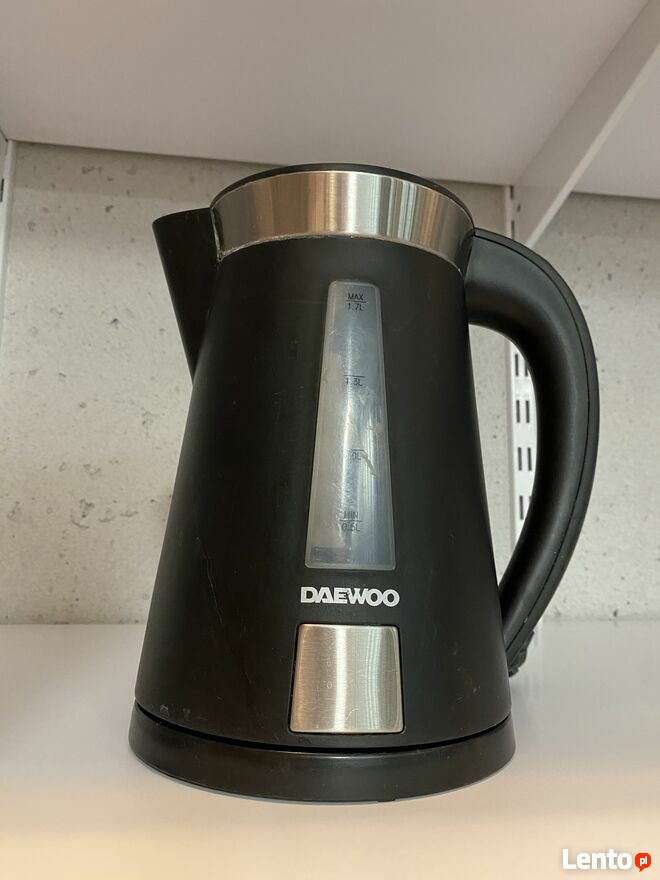 Czajnik elektryczny przewodowy Daewoo 1.7L czarny.Po mojej działalności szkoleniowej pozostał mi solidny, sprawny czajnik w stanie bardzo dobrym. Był niemal nieużyty.