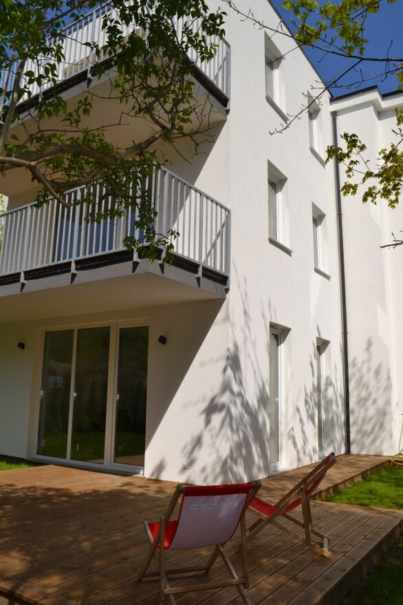 z tarasami 60m2 , ogrodem , garażem i miejscami parkingowymi.