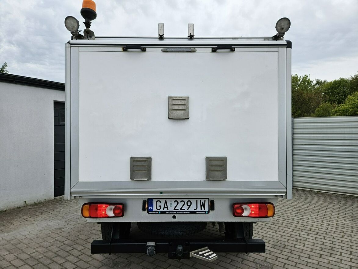 Samochód użytkowany jako warsztat mobilny. Na aucie jest porządna zabudowa otwierana z trzech stron. Na wyposażeniu szuflady warsztatowe. Całość bardzo solidna i 100% sprawna. Wymiary zabudowy: długość 193cm (280cm z przedłużką nad dachem kabiny), szerokość 171cm, wysokość 113cm.