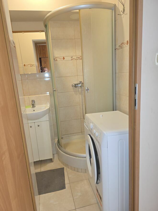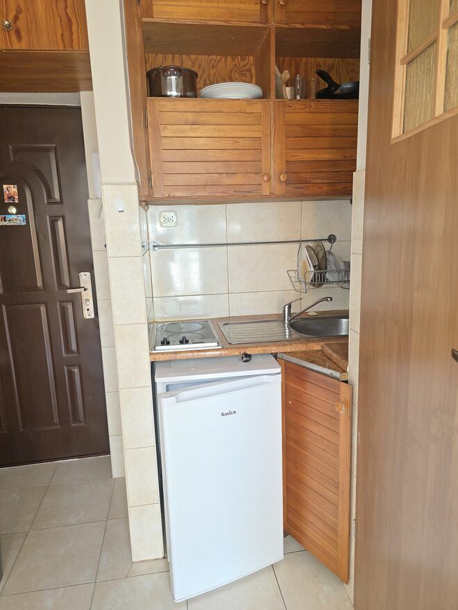 Na 20m2 składa się pokój z balkonem, przedpokój, osobna wnęka kuchenna oraz łazienka. Okno balkonowe wychodzi na południowy-zachód co zapewnia Słońce w ciągu dnia.
