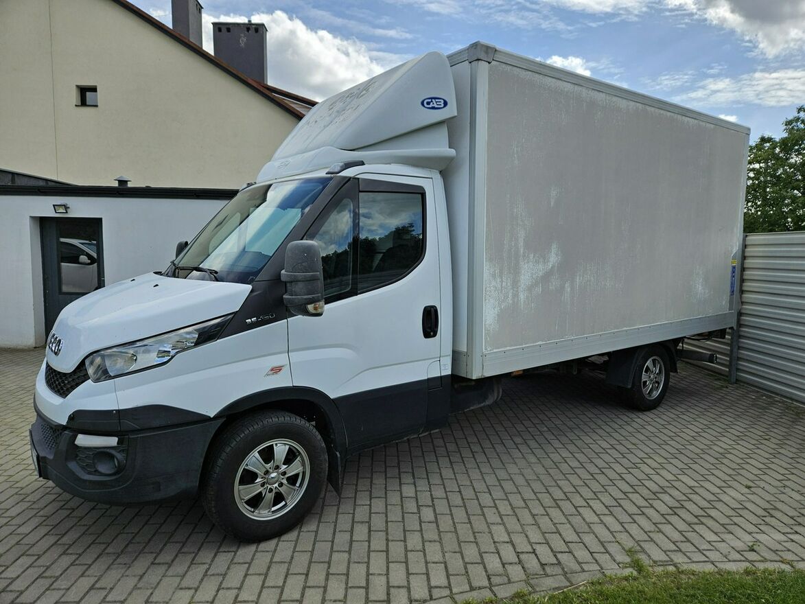 Przedmiotem sprzedaży jest Iveco Daily 35s15 z 2014r, z silnikiem Diesla 2.3 o mocy 145KM.Samochód z kontenerem izotermicznym (wymiary 420cm x 210cm x 210cm), i windą załadowczą. Do kontenera doprowadzone ogrzewanie EBERSPACHER. Rozstaw osi 410cm, ładowność wg dowodu 1056kg (i jednocześnie jest to rzeczywista ładowność bo auto waży tylko 2450kg). Auto zarejestrowane na 2 osoby.