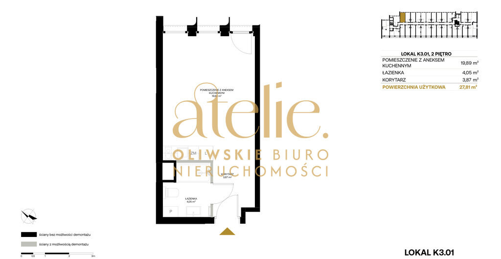 Lokal o powierzchni 27,81 m² znajduje się na piętrze 2 z 2 i