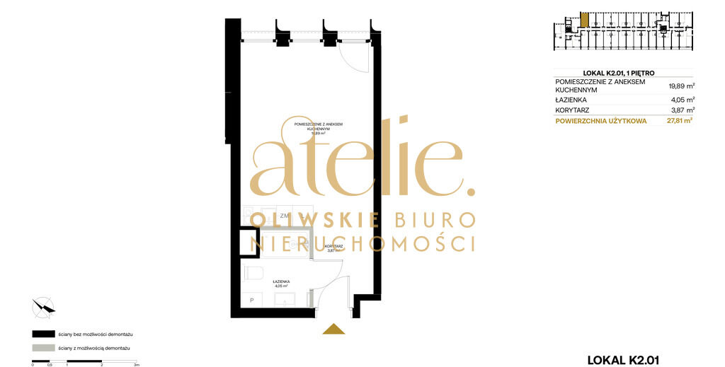 Lokal o powierzchni 27,81 m² znajduje się na piętrze 1 z 2 i