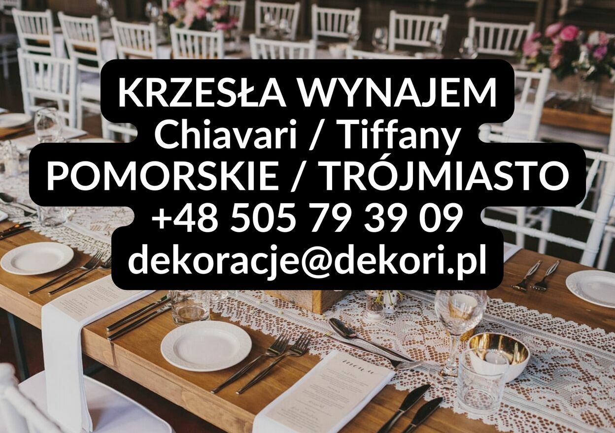 Obsługujemy całe Pomorze – krzesła Chiavari Pomorskie oraz krzesła glamour dostarczamy własnym transportem. Działamy lokalnie – Gdynia, Gdańsk, Sopot.
