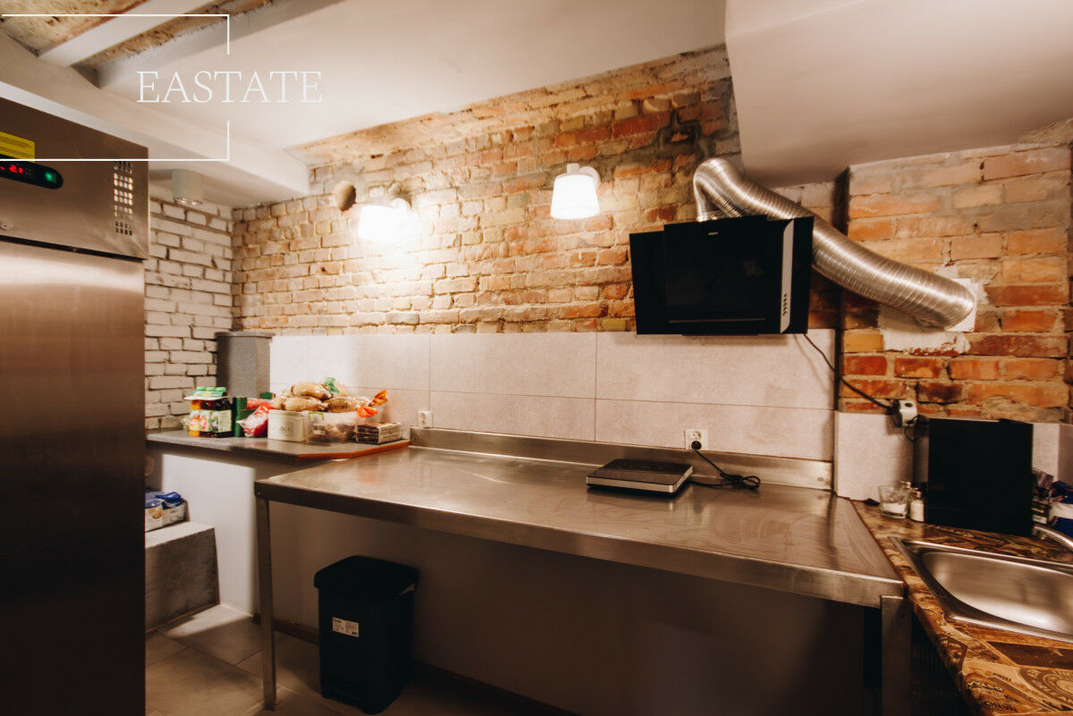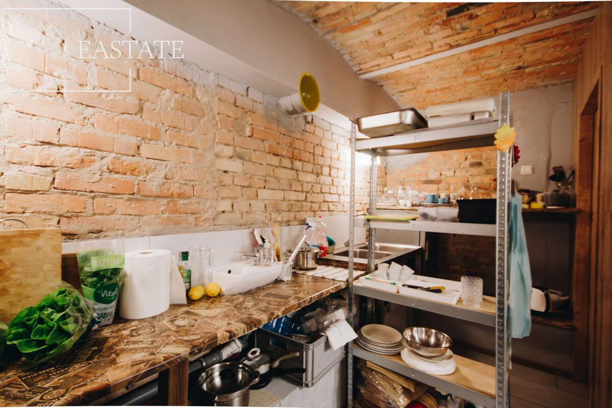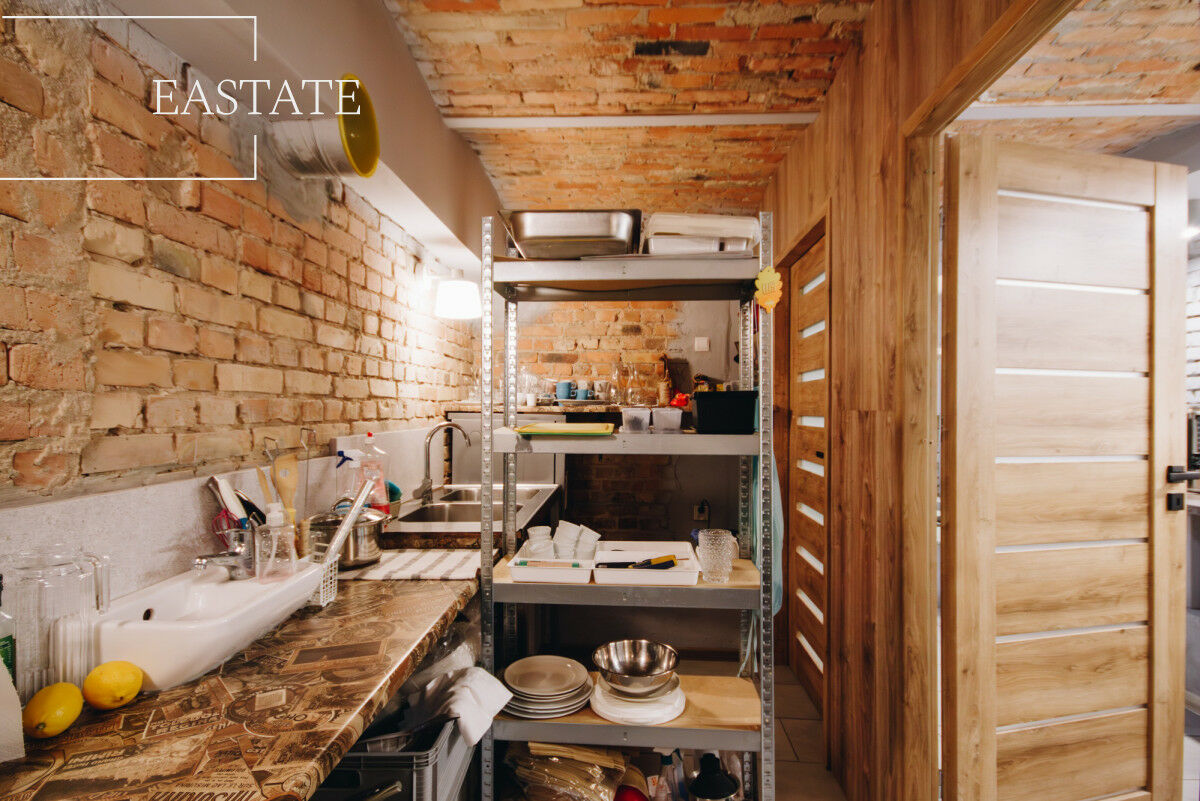Kuchnia z wydzieloną zmywalnią, w pełni przystosowana do działalności gastronomicznej.