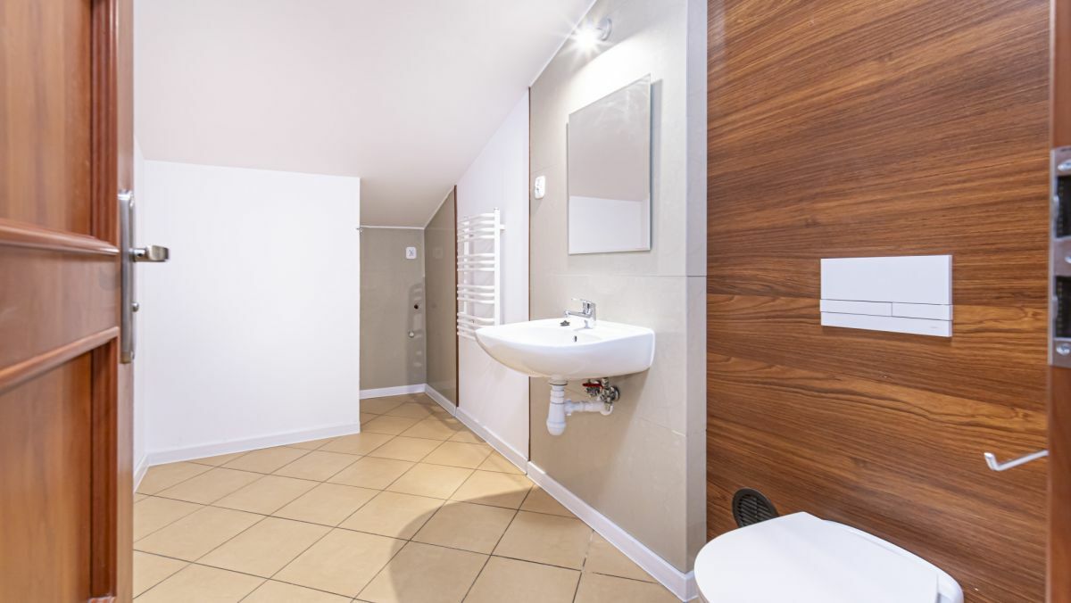 W nieruchomości są obecnie trzy duże i jasne pomieszczenia (jedno z aneksem kuchennym), jedno pomieszczenie bez okien np na magazyn oraz spora łazienka, z wydzielonym dodatkowym pomieszczeniem. Wszystkie pomieszczenia biurowe z oknami. 86m2 powierzchni całkowitej (niewielkie skosy)