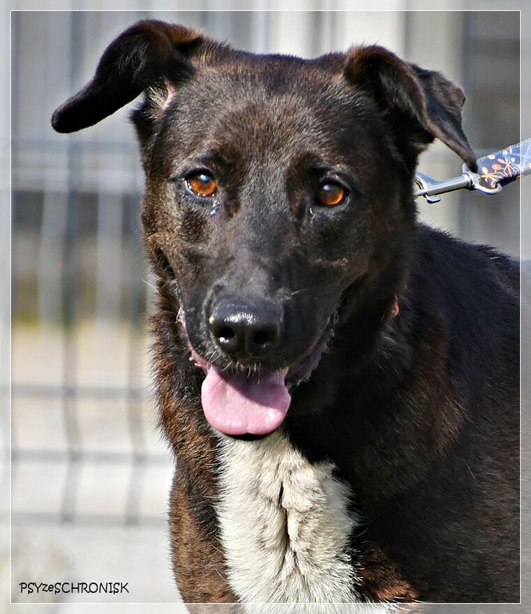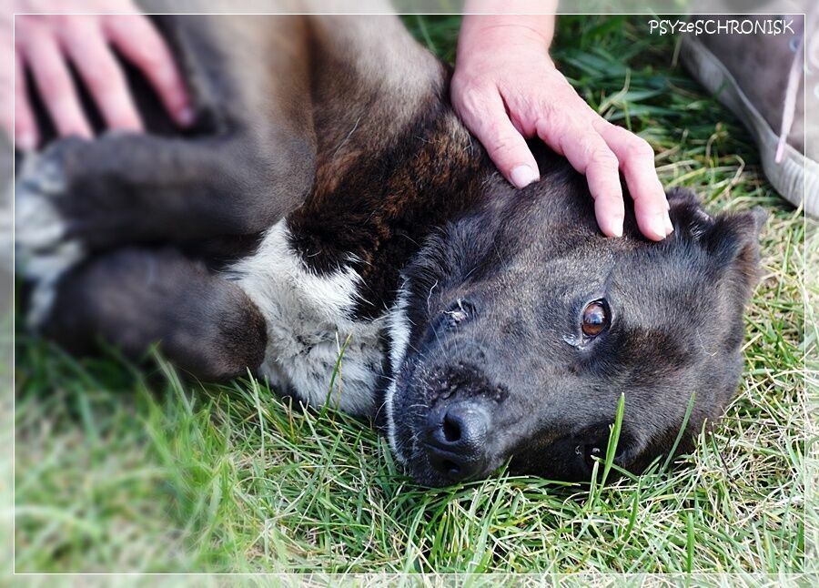 Nie miała dobrego życia, trafiła do schroniska chuda, w złym stanie. To tutaj poprawiła się: znikły żebra, zaczęła lśnić sierść. Najbardziej lubi być blisko człowieka. Być głaskaną, przytulaną, wystawiać się brzuchem do góry. Nie oczekuje szczególnych animacji ani zabawiania jej - psy o takim wyglądzie, jak ona, na ogół nigdy tego nie oczekują, bo nigdy nie miały.