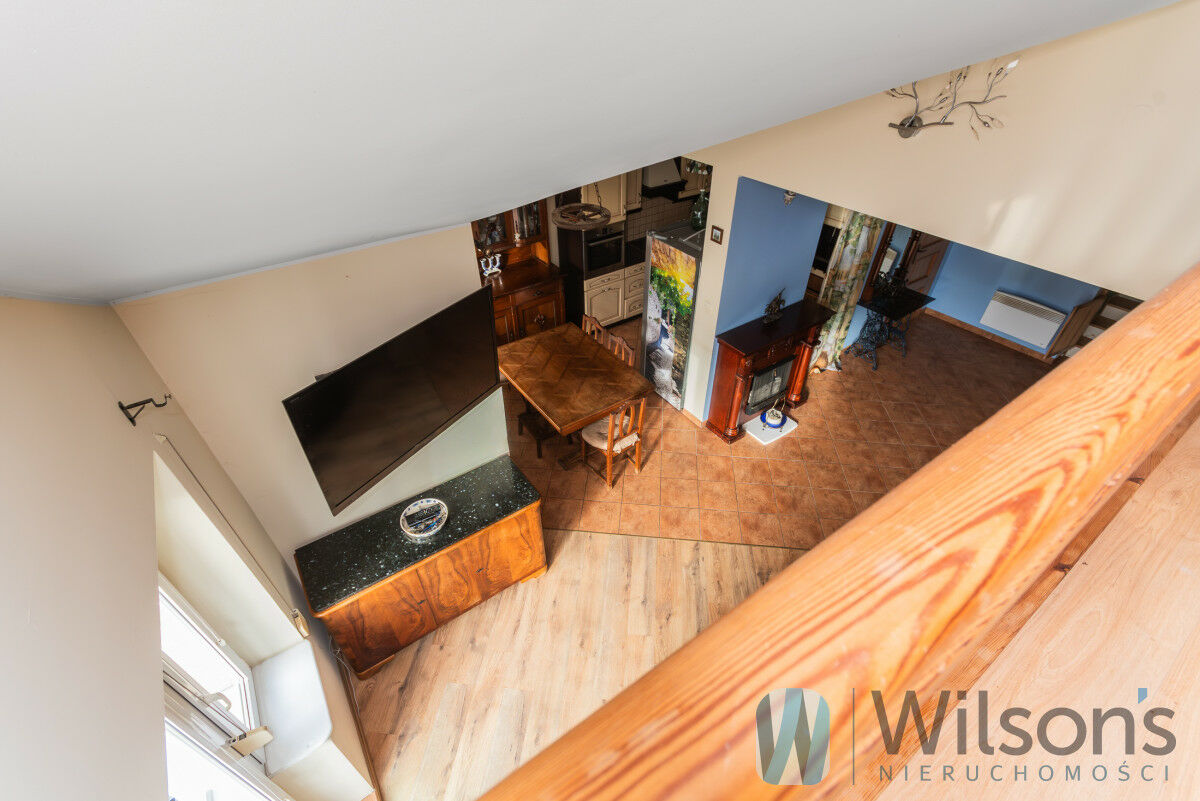 Na mieszkanie składa się salon, kuchnia, 3 sypialnie, łazienka, toaleta, antresola, przedpokój. Z salonu jest wyjście na balkon.