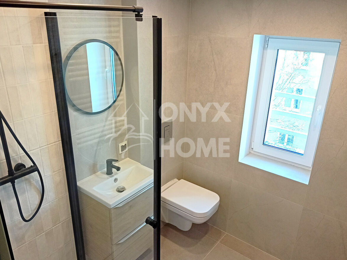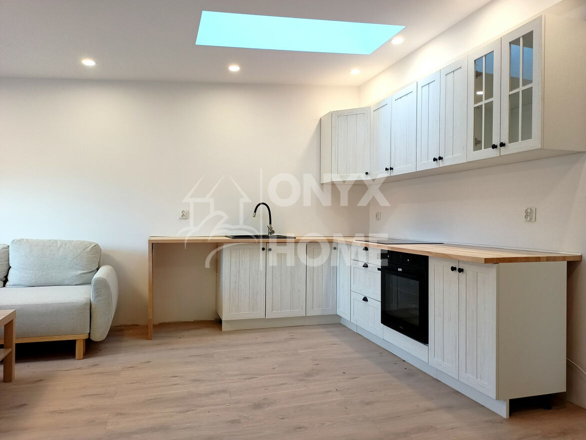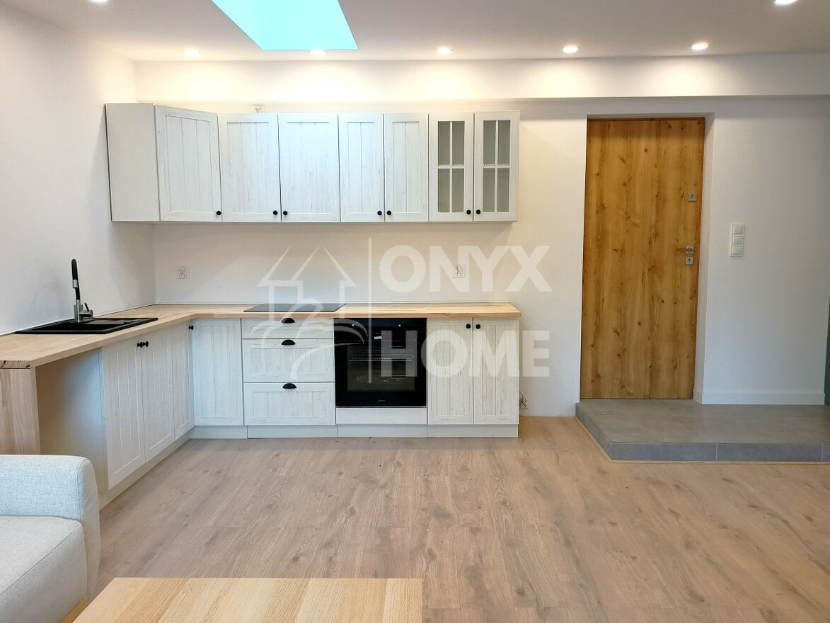 Całość po generalnym remoncie, obejmującym przebudowę układu pomieszczeń, wymianę instalacji elektrycznej i hydraulicznej, położenie nowych podłóg, montaż nowej stolarki, gładzenie i malowanie ścian, montaż mebli kuchennych.