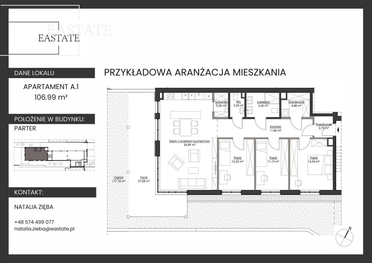 Przepiękny apartament o powierzchni 107 m², wzbogacony o prywatny ogród i taras o łącznej powierzchni blisko 200 m², zapewnia przestrzeń, którą można dowolnie kształtować - od wnętrz pełnych światła po intymne strefy relaksu.