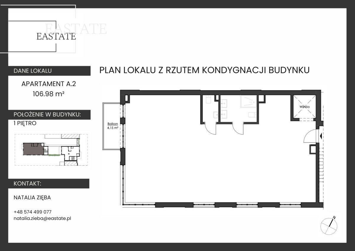 Przestronny apartament o powierzchni 107 m², z balkonem, zapewnia możliwość pełnej, indywidualnej aranżacji - w tym dostosowania układu do własnych potrzeb.