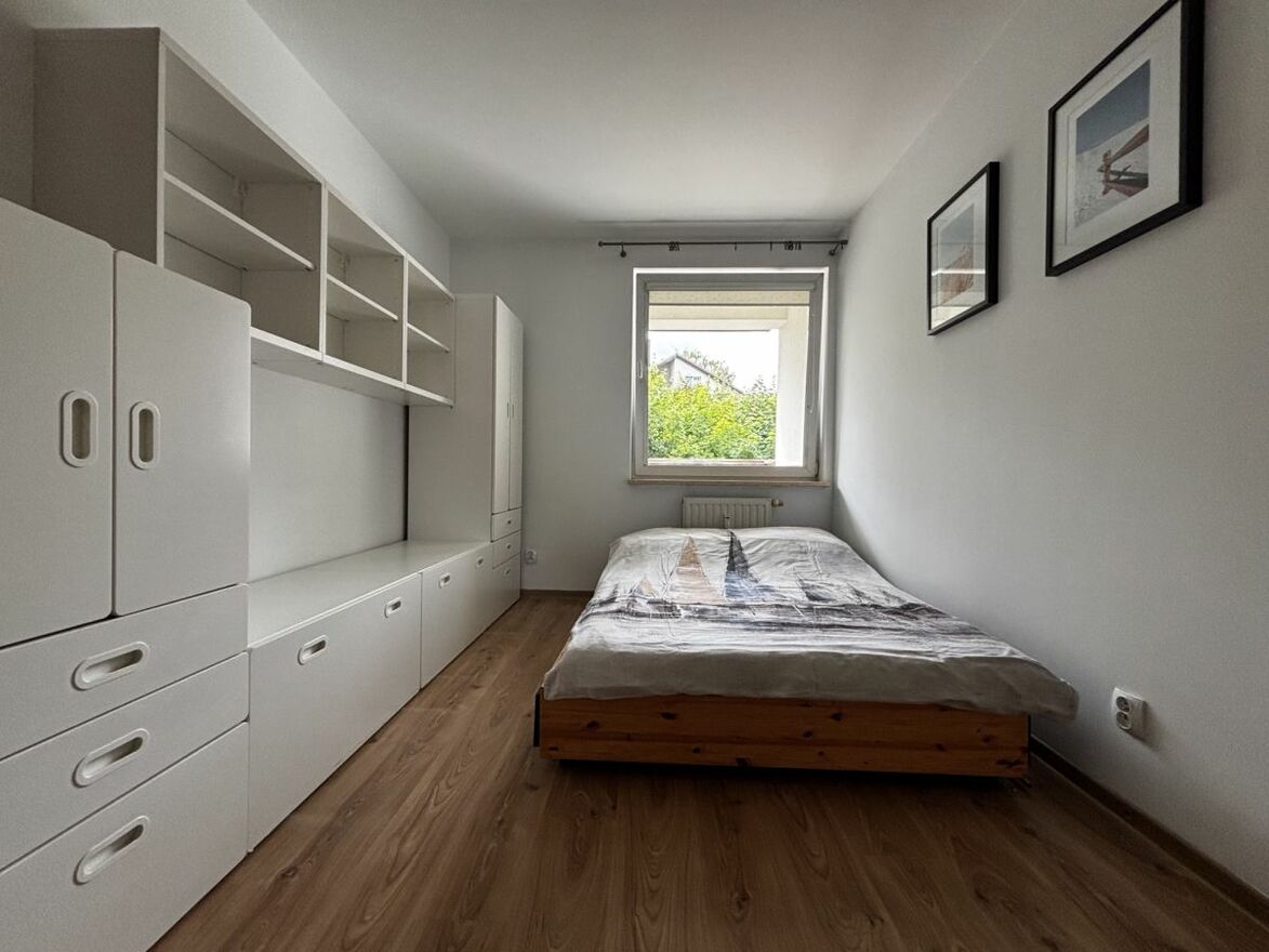 Sypialnia z pojemną szafą, ustawna i doświetlona.