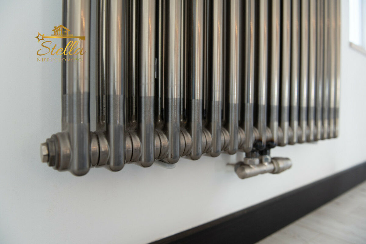 W salonie i sypialni piękne stylowe grzejniki stanowiące ciekawą ozdobę ściany, oraz piękne drzwi w stylu rustykalnym dopełniają klimat mieszkania.