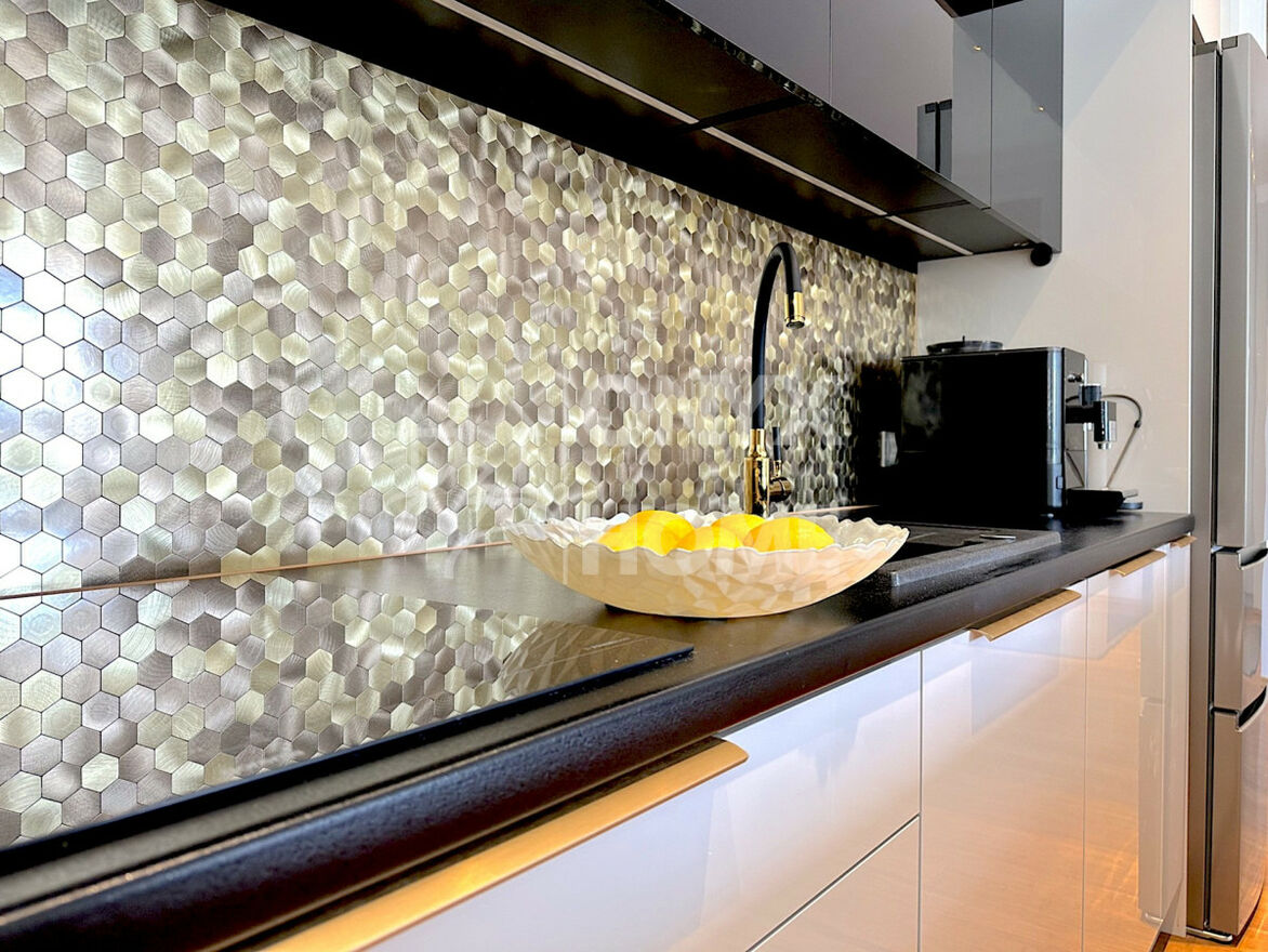 - Kuchnia otwarta na salon (posiada własne okno). Przestrzeń i miejsce do gotowania. Duża ilość szafek i blatów roboczych.