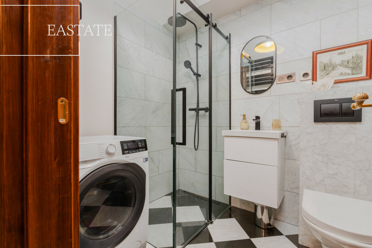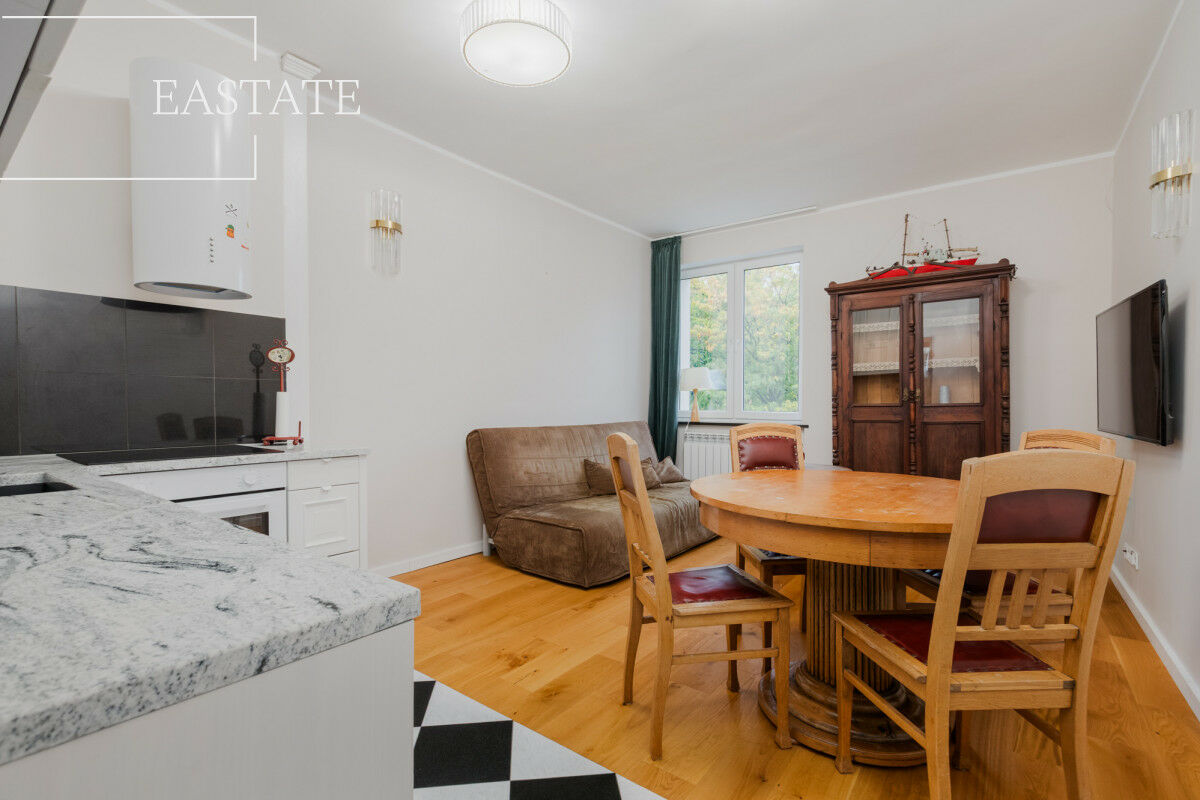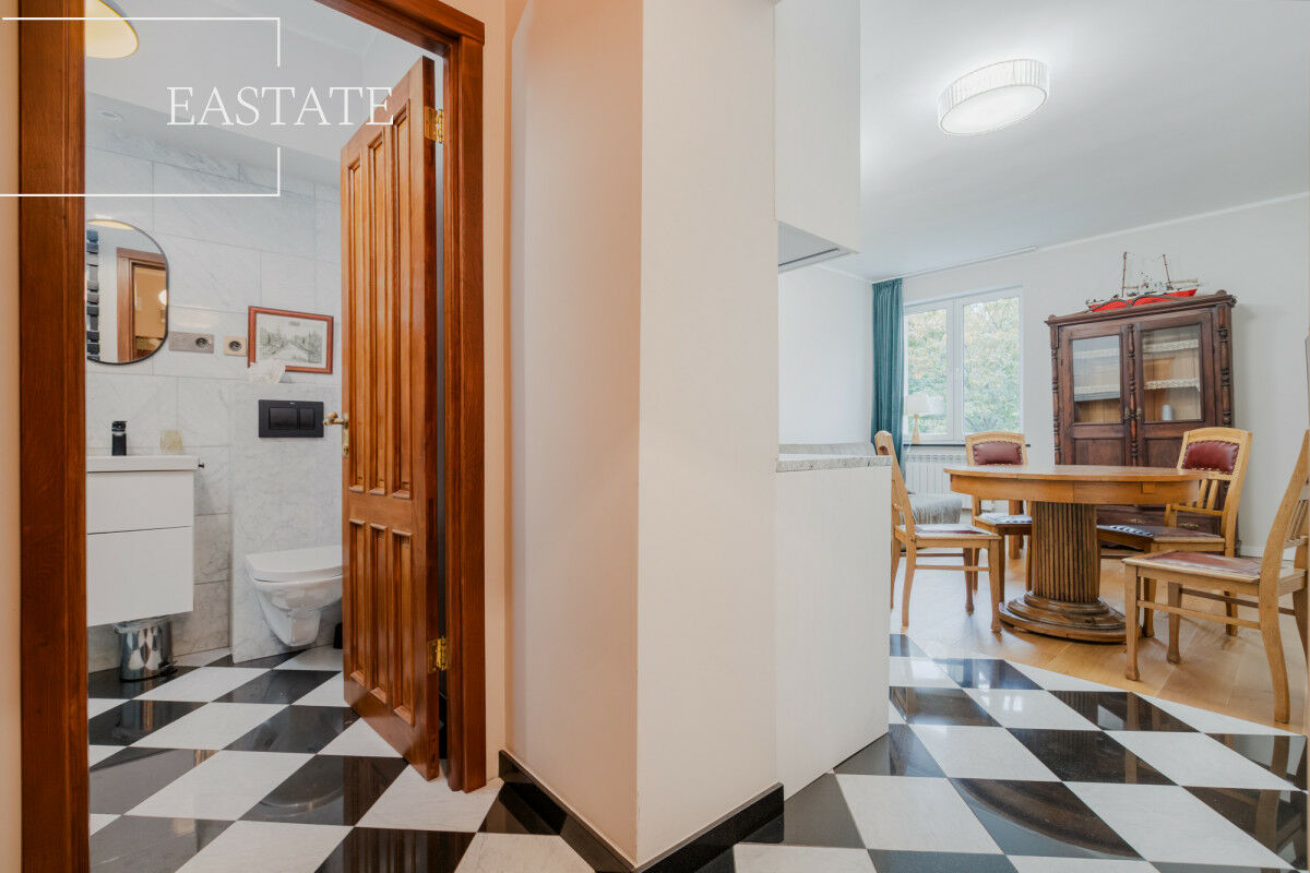 - Zieleń za oknami: widok na spokojne podwórze, cisza i prywatność mimo centralnego położenia.