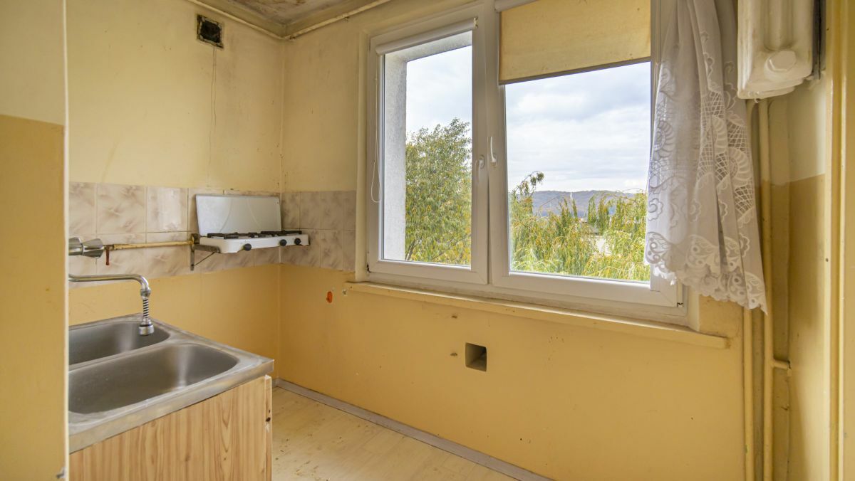 Kawalerka jak na swój metraż jest bardzo przestronna, a dodatkowo istnieje możliwość otwarcia kuchni na pokój dzienny, czy zamknięcia małej części sypialnianej. Wspólnota ma w planach odłączenie gazu