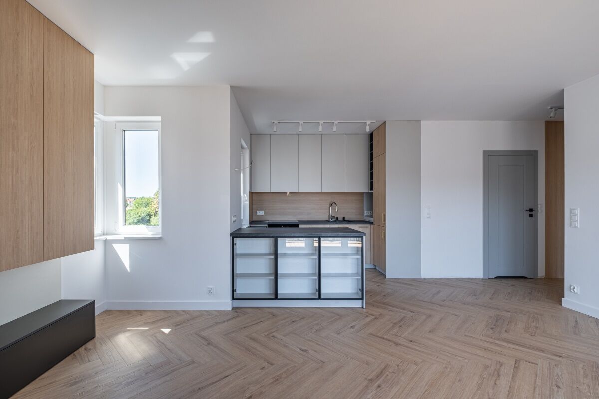 Wykończenie: mieszkanie nowe, gotowe do zamieszkania, wykończone w wysokim standardzie, przemyślane zabudowy stolarskie na wymiar, kuchnia w pełni wyposażona w wysokiej klasy sprzęt AGD.