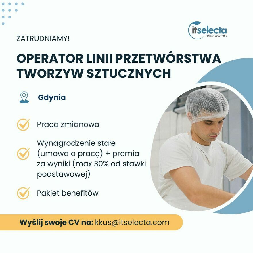 Poszukujemy Operatora linii produkcyjnejLokalizacja: Gdynia