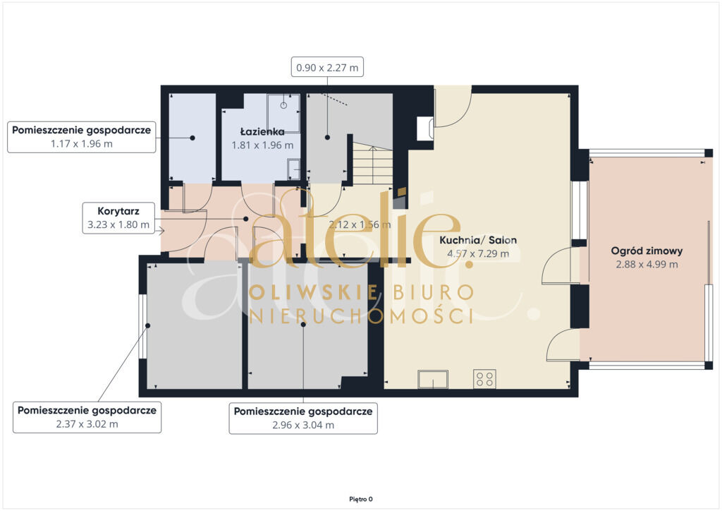 trzy pomieszczenia gospodarcze