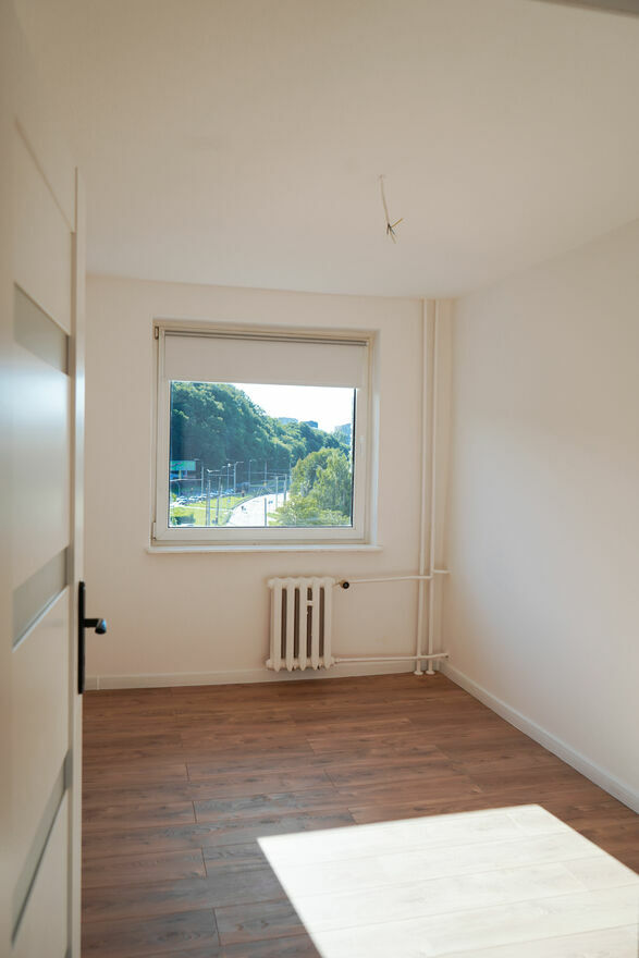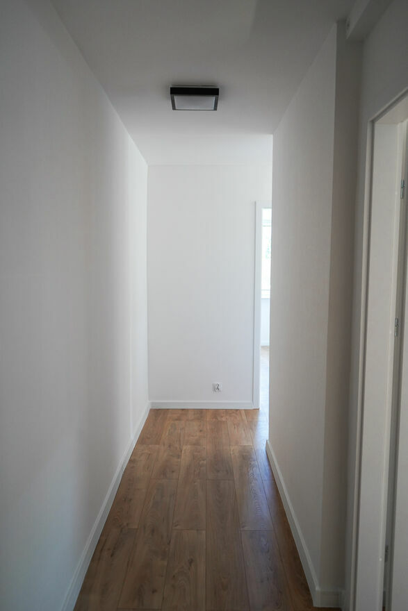 Słoneczne, świeżo wyremontowane mieszkanie 3-pokojowe.Dwa oddzielne pokoje i salon z aneksem kuchennym (wyposażonym w nowy sprzęt: zmywarkę, piekarnik i kuchenkę gazową). Łazienka z prysznicem, obok przygotowane miejsce na pralkę. Długi przedpokój z miejscem na szafę w zabudowie.