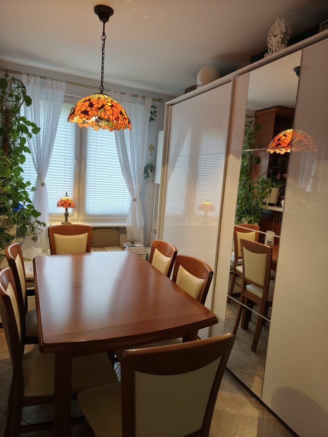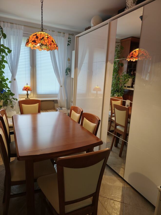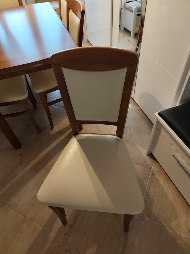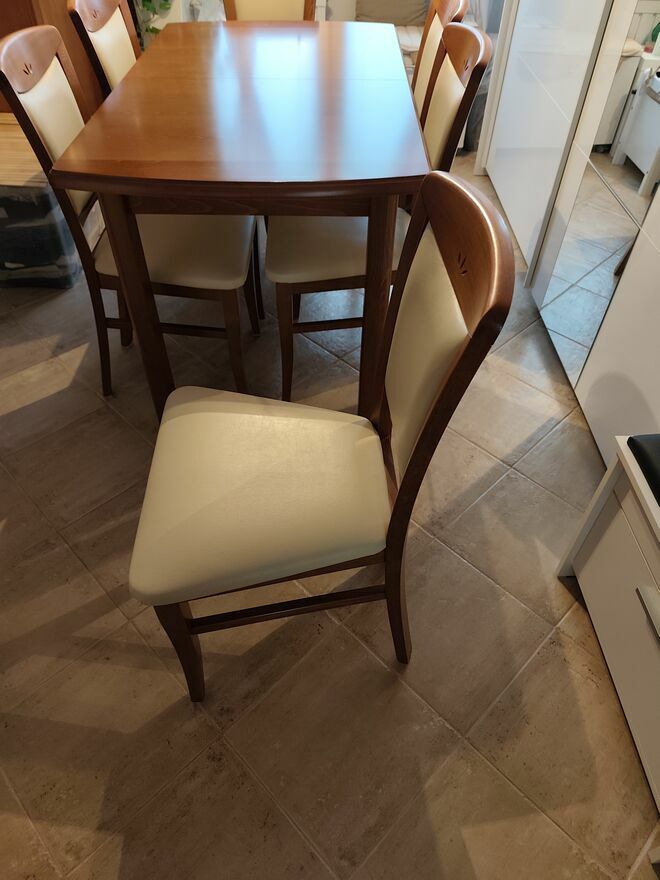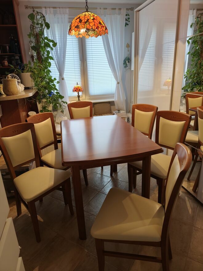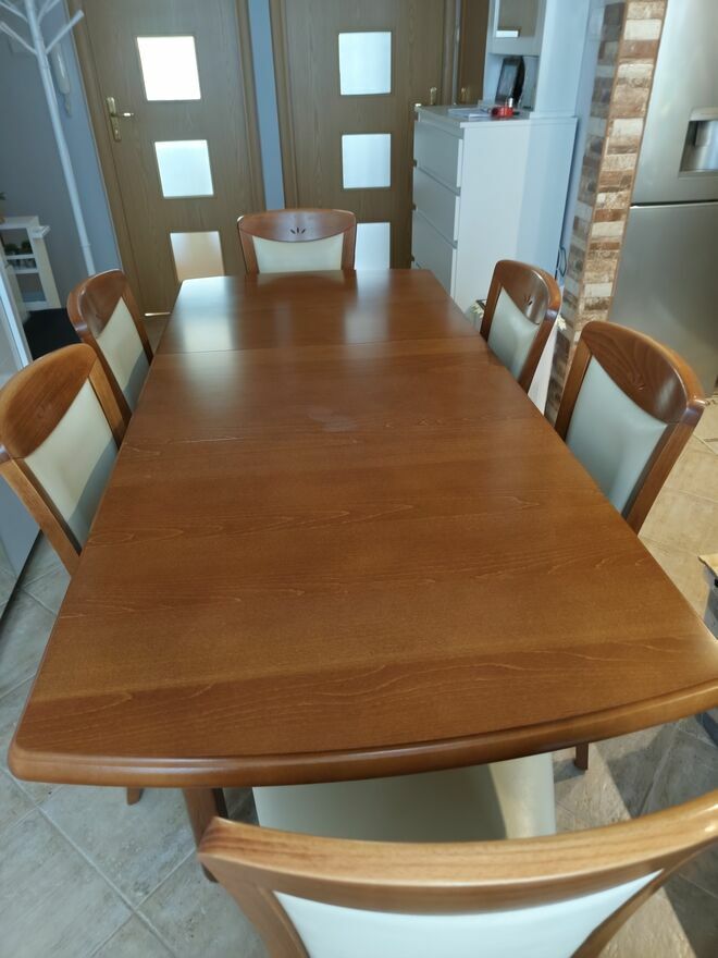 Sprzedam stoł i sześć krzeseł stół złożony szerokość 0.75m długość 1.25m po rozłożeniu długość stołu to 1.63m komplet używany w dobrym stanieSprawdź zainteresowanie tym ogłoszeniem
