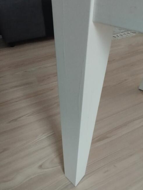 Biały rozkładany stół 84/140-210/74 , dwa wkłady po 40 cm. 4 krzesła (2 białe i 2 czarne) Siedziska tapicerowane ...