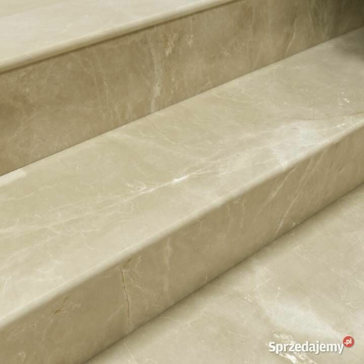 Stopień marmurowy Crema Marfil New to doskonała propozycja dla osób poszukujących prestiżowego wykończenia schodów lub parapetów. Wykonane z wysokiej jakości marmuru, te stopnie charakteryzują się gładką, polerowaną powierzchnią, która nadaje im elegancki połysk i wyjątkową estetykę. Jasne kremowe i beżowe odcienie marmuru wprowadzają do wnętrza ciepło i naturalną harmonię, pasując do różnych stylów aranżacyjnych – od klasycznych po nowoczesne.