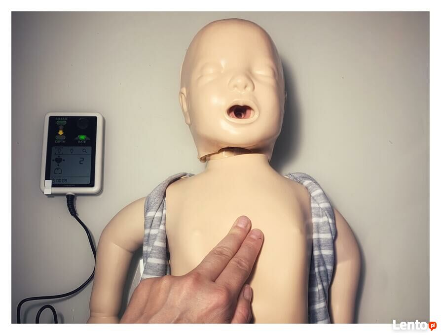 - na 3 fantomach (dorosły, junior, baby) z aplikacją wyświetlającą prawidłowość: głębokości, częstotliwości i umiejscowienia uciśnięć