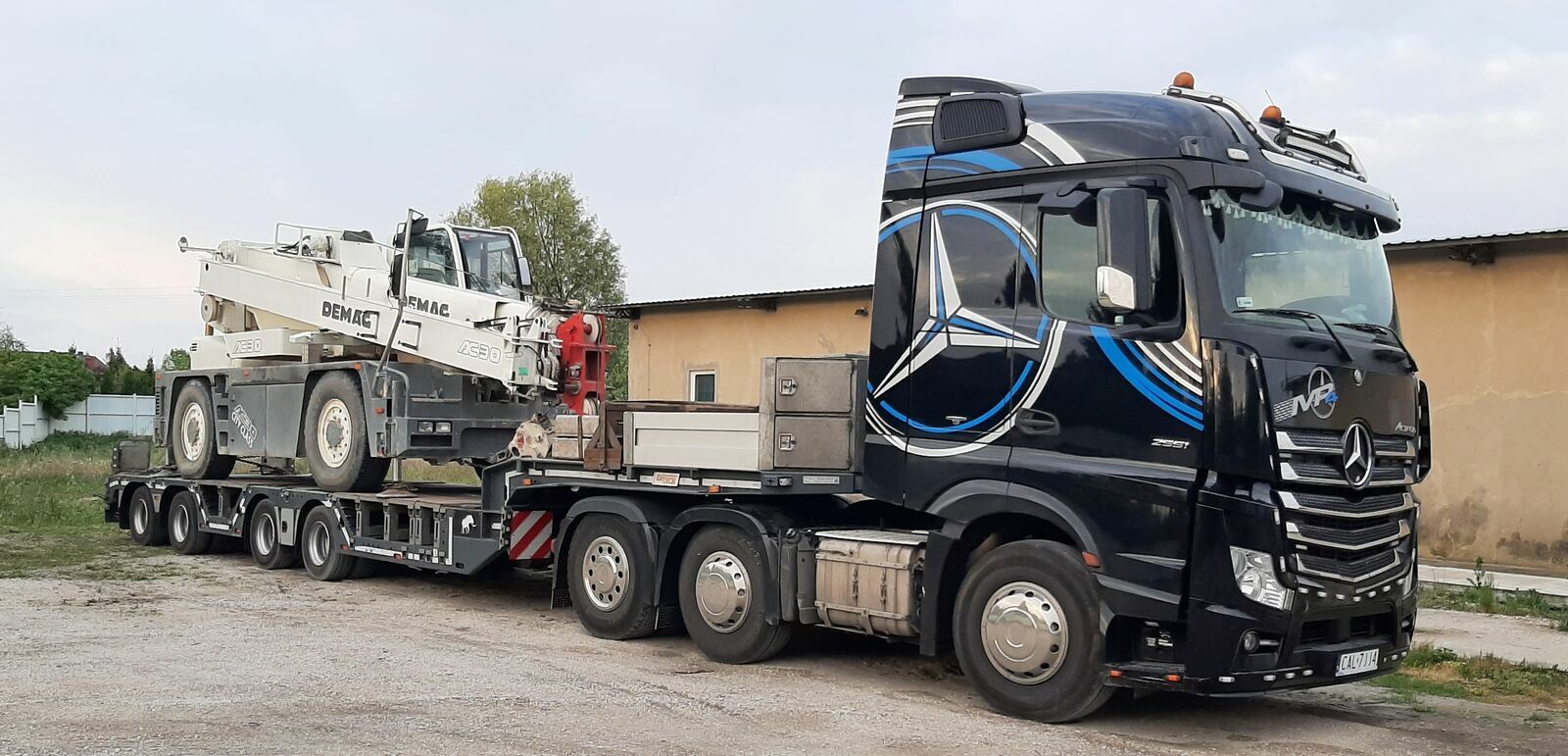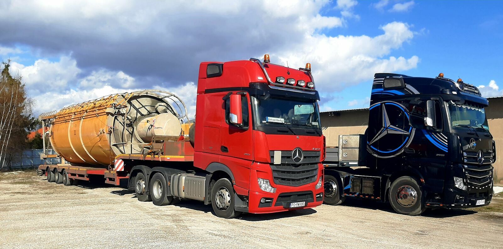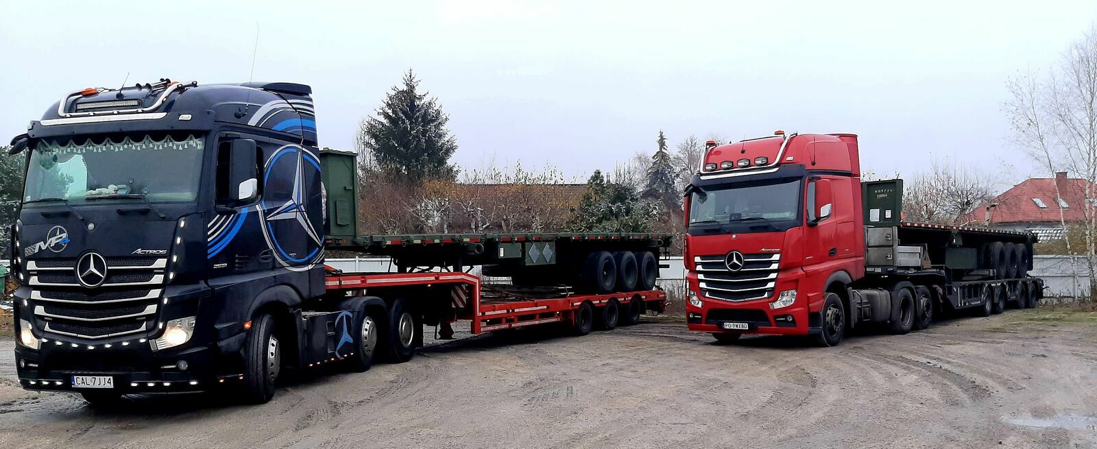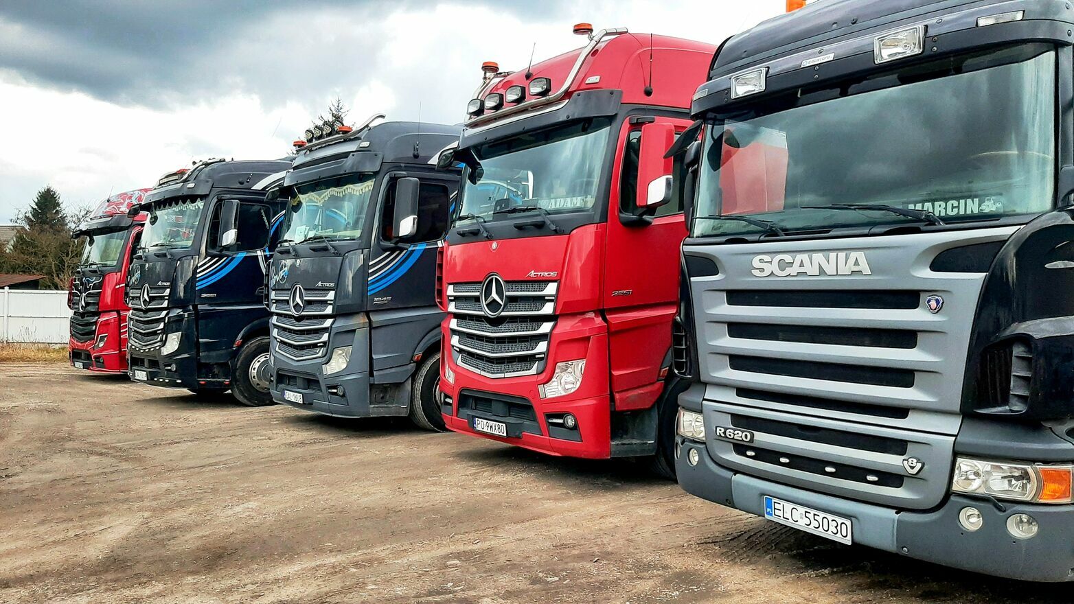 Do dyspozycji szeroki asortyment samochodów ciężarowych oraz naczep wróżnych konfiguracjach , do transportu ładunków od 1t do 100t (semi, tiefbett, tele-mega, platforma).
