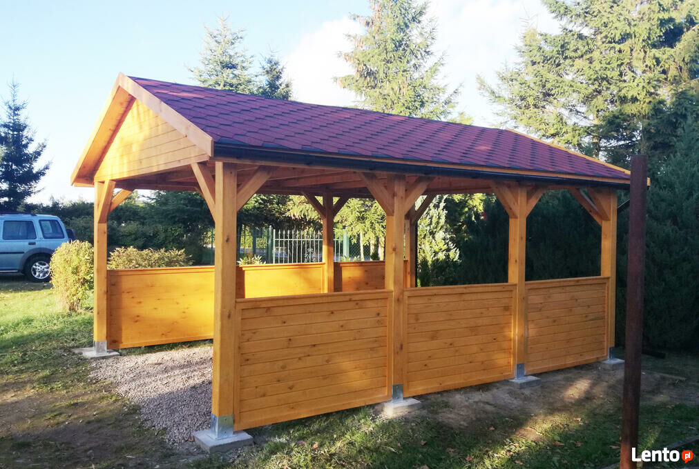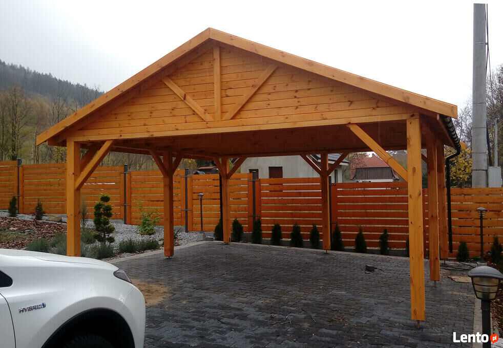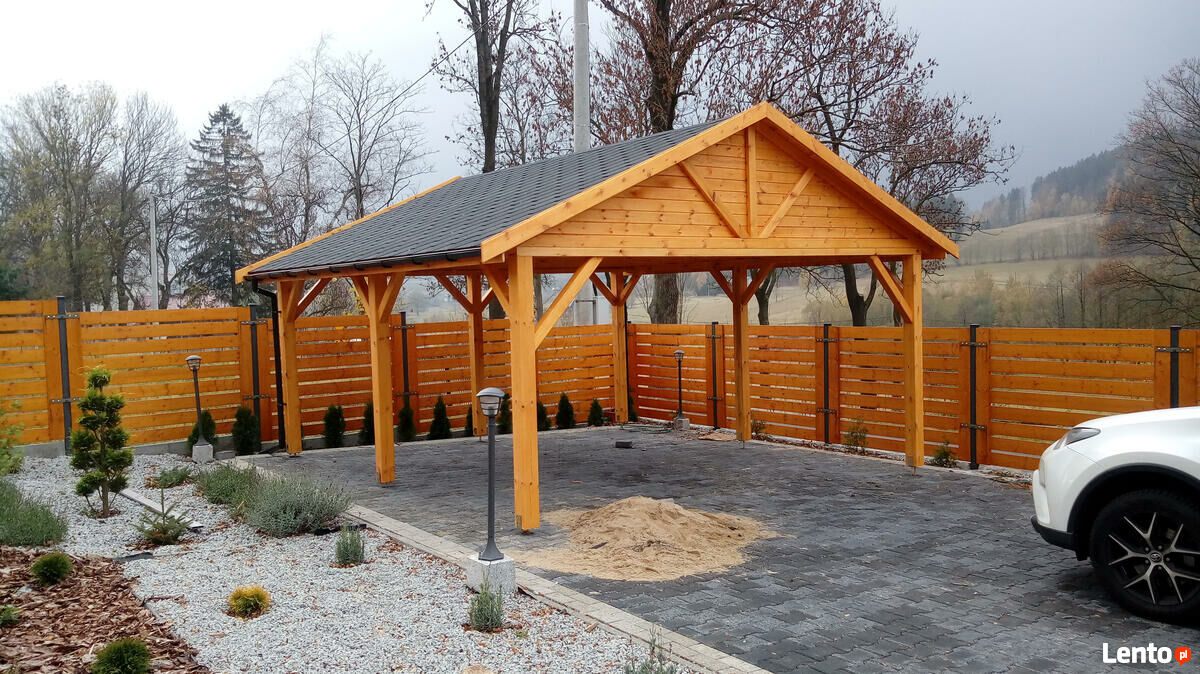 Wiata garażowa drewniana, wiata samochodowa lub altana
