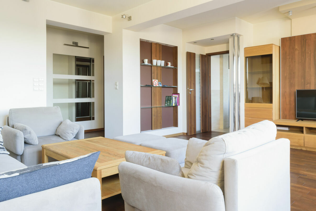 III pokój wyposażony w stół, szafki, komplet wypoczynkowy, TV